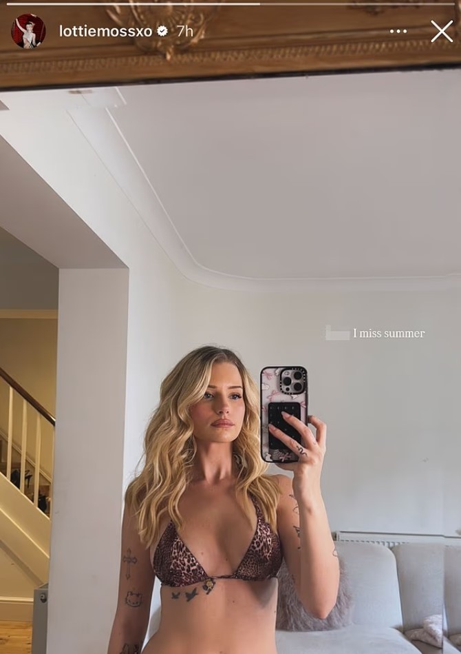 Modelja Lottie Moss, i ngriti temperaturat në Instagram të hënën, duke ndarë një fotografi seksi me bikini të ngushta me print leopardi.