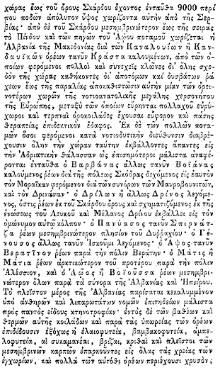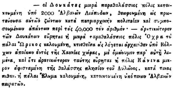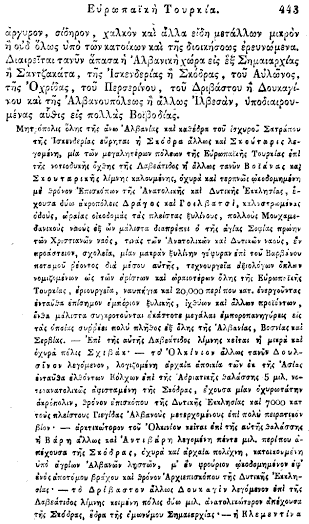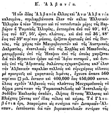 Kjo renditje tregon se për gjeografinë greke të vitit 1838, Kosova (Prishtina) dhe Shkupi (Ohri) ishin pjesë organike dhe të padiskutueshme të Shqipërisë.