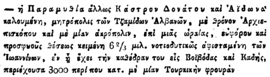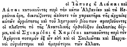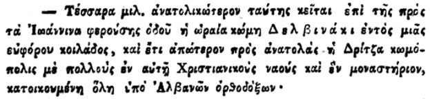 Autori bën një saktësim të rëndësishëm për Delvinakin, duke e quajtur vendbanim të shqiptarëve ortodoksë. Po ashtu, ai përfshin Suliotët dhe Pargjinotët brenda fiseve shqiptare, duke i cilësuar si më “të qytetëruarit” e këtij trungu.