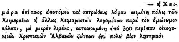 Një nga pikat më interesante është identifikimi i Gjirokastrës si një qytet i “Himariotëve”. Autori shënon: